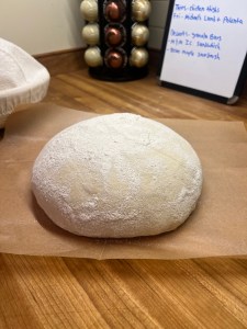 - Place your dough into a proofing basket (coated with flour) or a round bowl lined with a kitchen towel WELL coated with flour. cover with a towel, and let sit out until proofed, at least 4 hours depending on your climate.