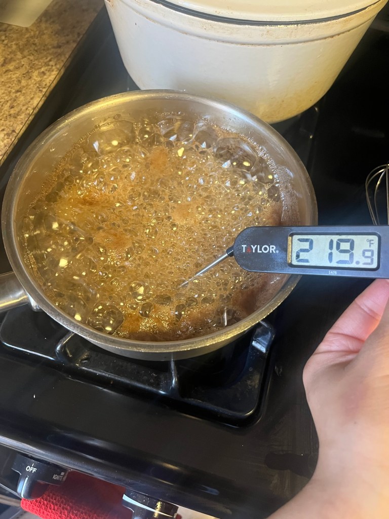 - Slowly bring the water and honey mixture to a boil while stirring. If you have a kitchen thermometer you want it to reach at least 240ยฐF